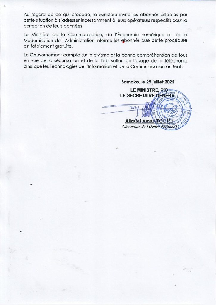COMMUNIQUÉ DU MINISTÈRE DE LA COMMUNICATION DE L’ÉCONOMIE NUMÉRIQUE ET DE LA MODERNISATION DE L’ADMINISTRATION SUR LA CONSULTATION DES NUMÉROS RATTACHÉS AU NUMÉRO D’IDENTIFICATION NATIONALE (NINA)